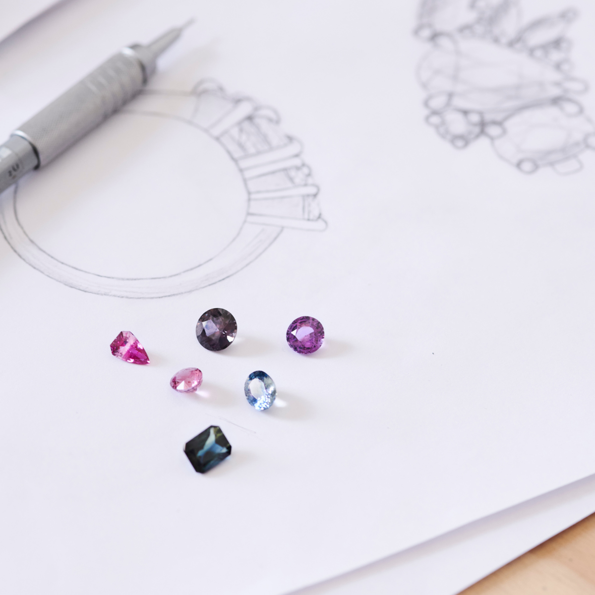 You’ll receive a selection of ethically sourced sapphires, diamonds, or heirloom-quality stones to choose from.