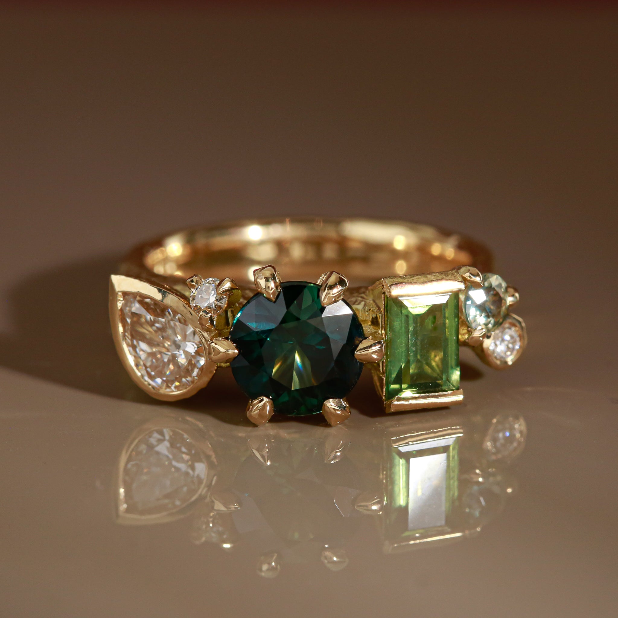 Organic in form and rich in colour, this engagement ring feels like a small landscape of light shaped by hand.
